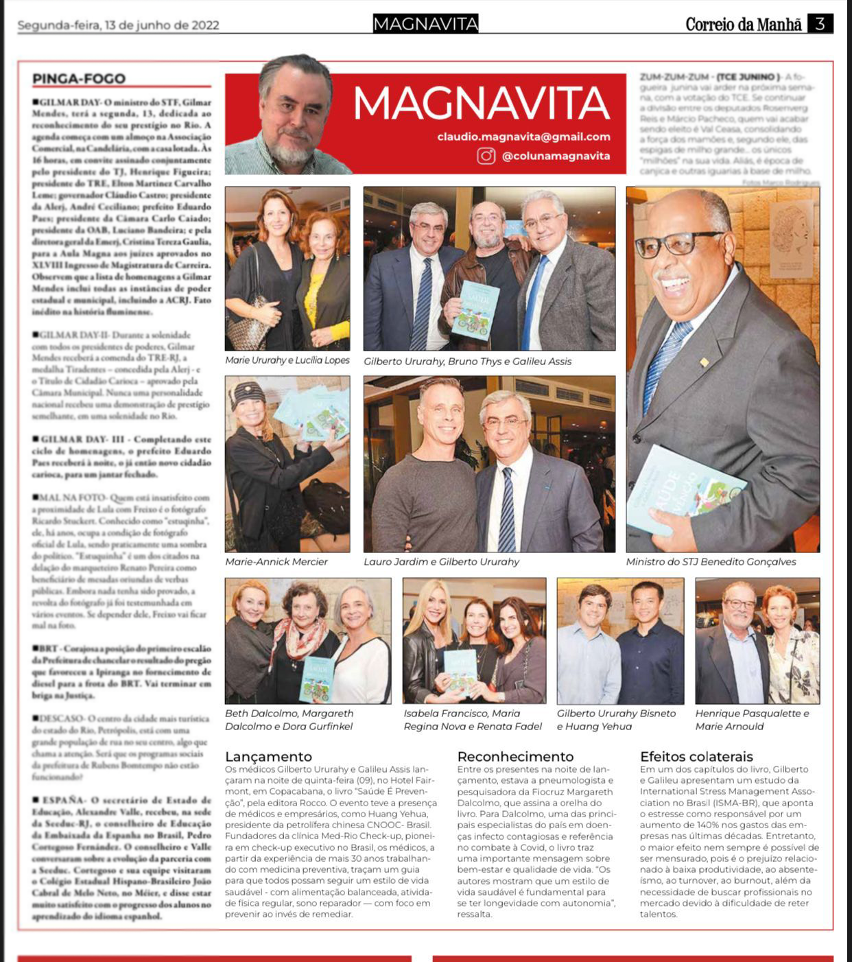 Os médicos Gilberto Ururahy e Galileu Assis lançaram na noite de quinta-feira (09), no Hotel Fairmont, em Copacabana, o livro “Saúde É Prevenção”, pela editora Rocco. O evento teve a presença de médicos e empresários, como Huang Yehua, presidente da petrolífera chinesa CNOOC- Brasil. Fundadores da clínica Med-Rio Check-up, pioneira em check-up executivo no Brasil, os médicos, a partir da experiência de mais 30 anos trabalhando com medicina preventiva, traçam um guia para que todos possam seguir um estilo de vida saudável – com alimentação balanceada, atividade física regular, sono reparador — com foco em prevenir ao invés de remediar.