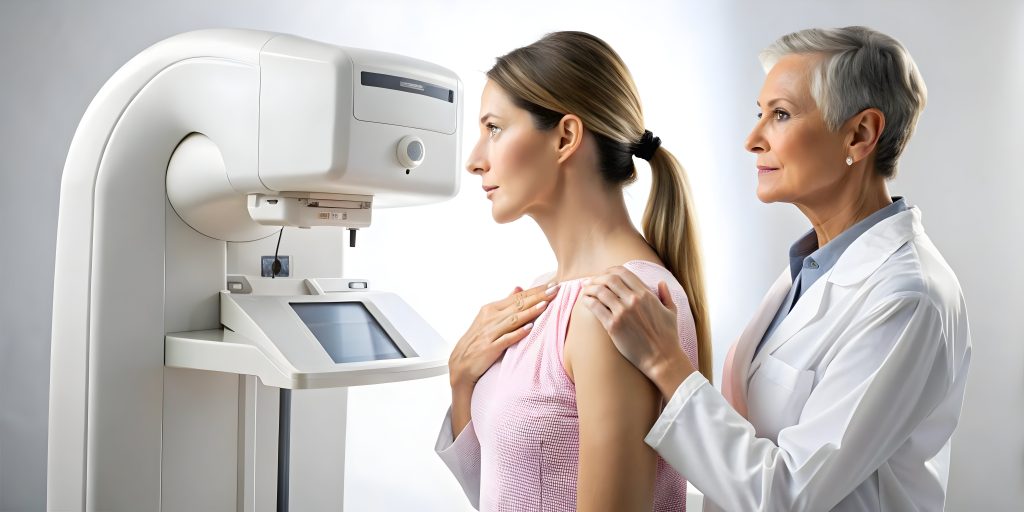 Médica realiza uma mamografia em uma jovem: esse é um dos exames do check-up feminino completo da Med-Rio, indicado para o rastreio do câncer de mama — Freepik/ Reprodução