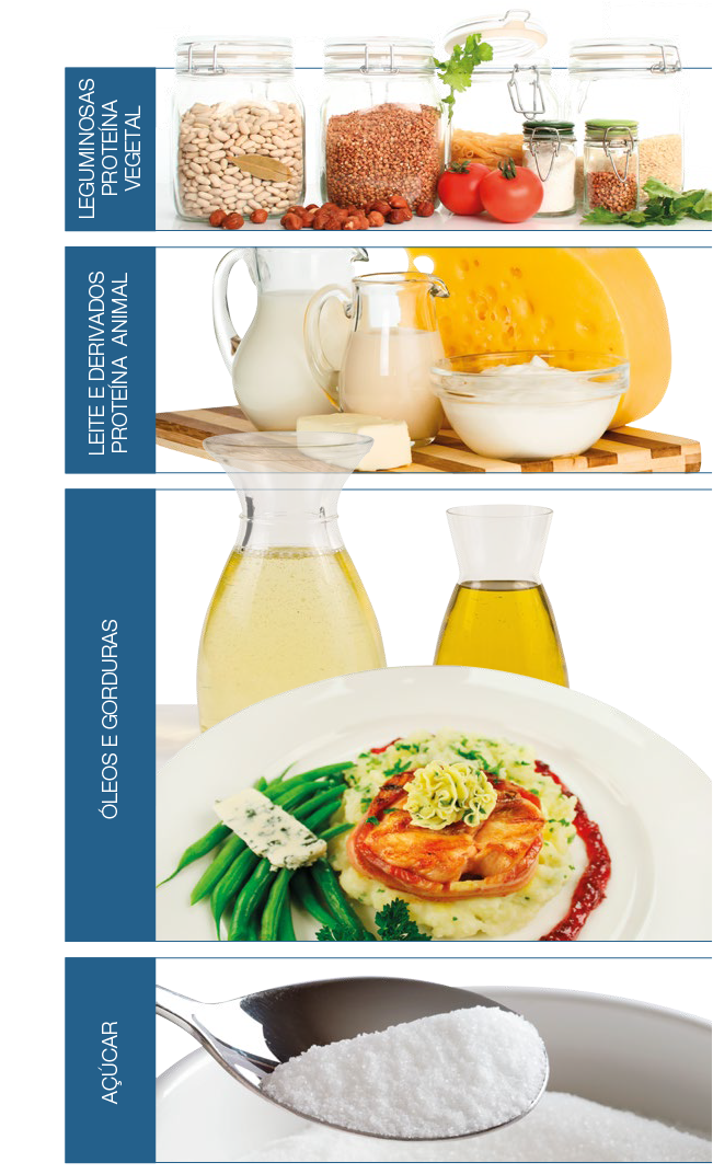 Para garantir que todos os nutrientes essenciais ao organismo estejam presentes no seu dia a dia, o “Meu Prato Saudável” mostra, de maneira visual e facilitada, as porções de alimentos que compõem a pirâmide alimentar, instrumento gráfico adotado pelo Brasil para mostrar os diferentes grupos de alimentos.