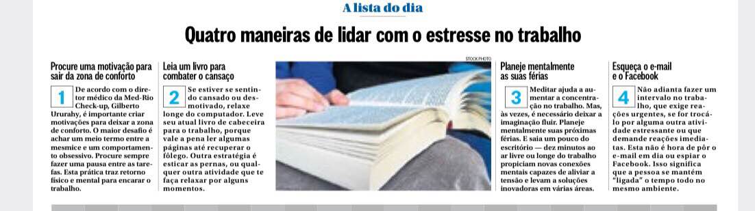 O Globo – Estresse no trabalho Admin2015-10-11T12:00:00-03:00 Compartilhe! FacebookTwitterLinkedInE-mail