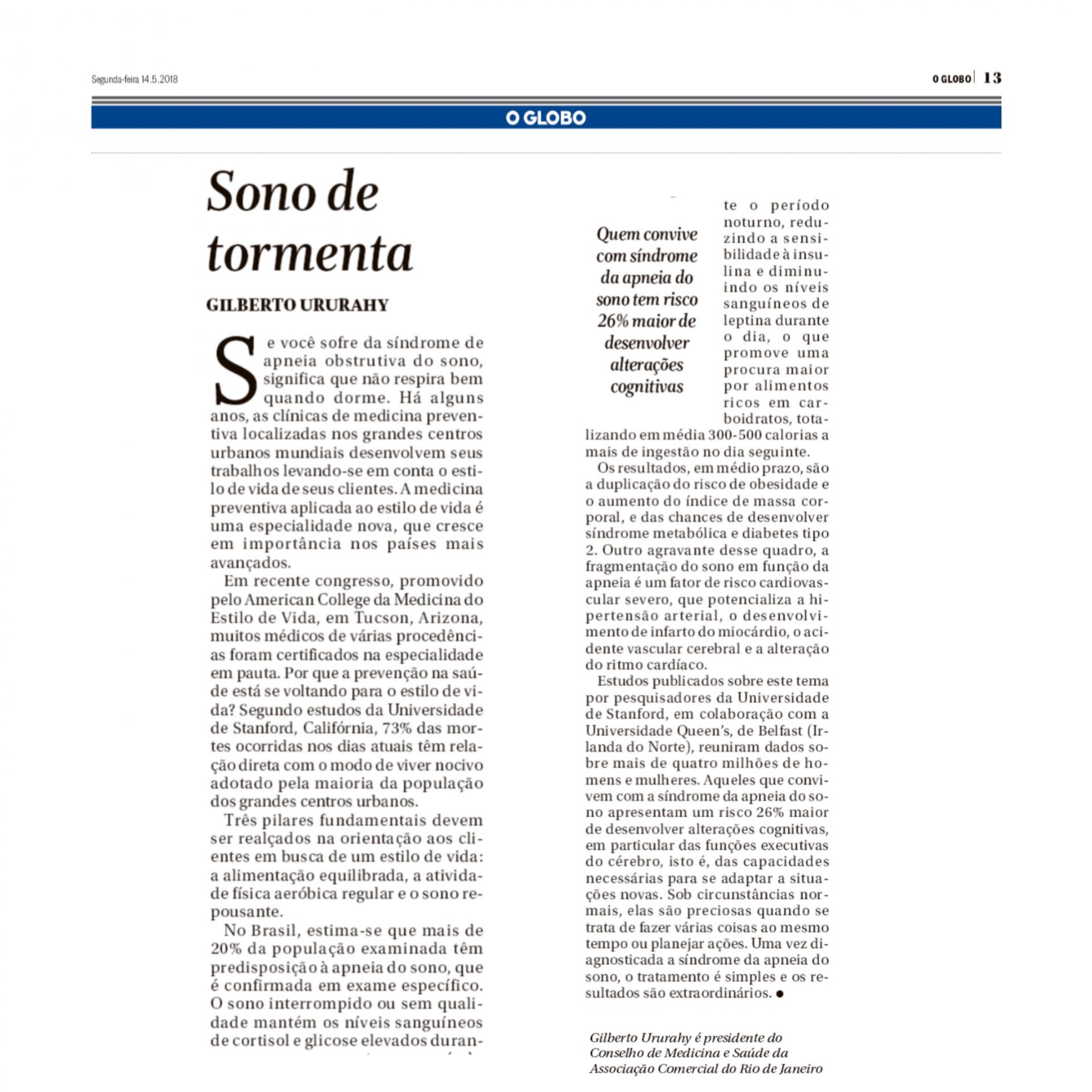 O Globo – Sono de Tormenta – Artigo Dr. Gilberto Ururahy Admin2018-05-14T12:00:00-03:00 Compartilhe! FacebookTwitterLinkedInE-mail