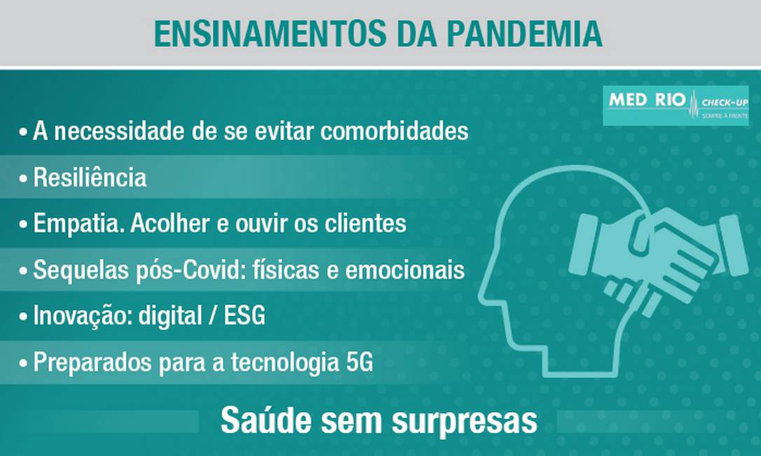 Os resultados dos exames são emitidos em até 24 horas úteis por meio de aplicativo. Cada cliente possui um prontuário digital, podendo realizar a consulta pós-check-up via telemedicina. Os dados também são protegidos segundo a Lei Geral de Proteção de Dados, e a segurança cibernética foi implementada nas clínicas. As unidades da Med-Rio Check-up estão inseridas no conceito ESG. Com o retorno à normalidade, a clínica tem recebido visitas de representantes de empresas em busca de check-up médico de alta qualidade e de diagnósticos seguros para seus executivos.